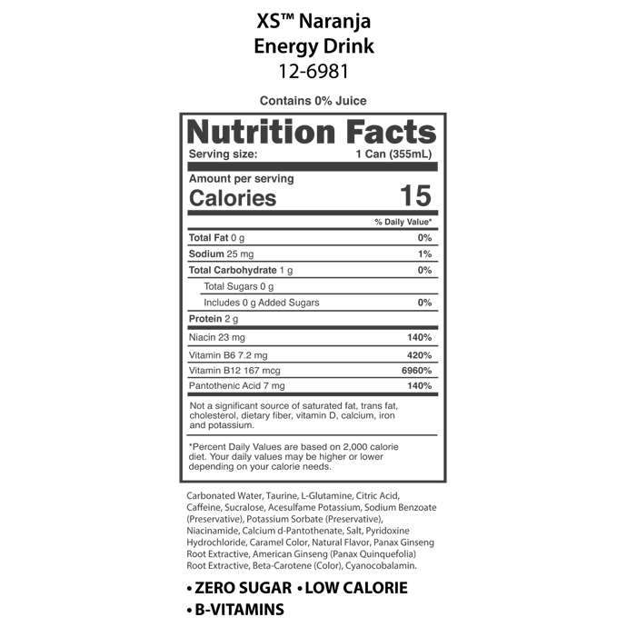 Rebosando con un refrescante sabor tropical que te ayudará a conquistar tu día, esta Bebida de Energía XS™ tiene la cantidad precisa de cafeína y vitaminas B, sin los niveles de azúcar ni carbohidratos que tienen otras bebidas de energía populares.