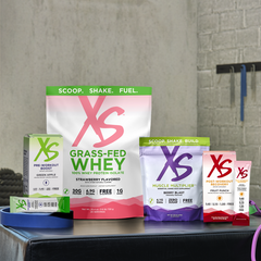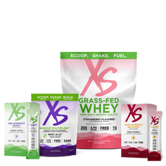 - La Proteína de suero XS™ alimentada con pasto contiene 30 gramos de aislado de proteína de suero de leche y 6.9 gramos de BCAA* para desarrollar masa muscular magra.†